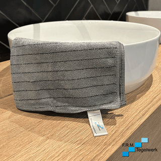 De bekende FRM Quick Clean wonderdoek™ voorzien van een innovatieve technologie. "Ontworpen door de eigenaar en tevens tegelzetter van FRM Tegelwerk"